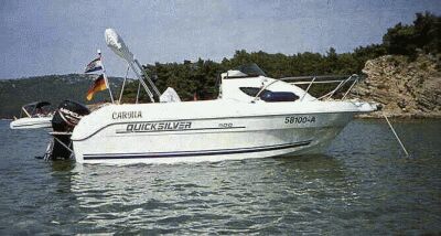 - 1999 auf der Messe Friedrichshafen, die jedes Jahr im September stattfindet, entschied ich mich, uns ein neues Motorboot zu kaufen. Also ging ich zu Marina Wassersport in München und bestellte das Boot, eine Quicksilver QS 500 Kabine. Leider gab es den Rumpf nur in Kombination mit einem neuen Motor. Und wenn schon dann sollte es ein 4-Takt Motor sein, den es damals von Mercury aber nur als 50 PS Variante gab. Der Motor ist ausreichend, aber wenn ein Haufen Urlaubsgepäck dabei ist und man auf Flüssen unterwegs ist, könnte die Motorleistung schon etwas höher sein. Nicht umsonst wird die zulässige Höchst PS Zahl mit 90 angegeben.